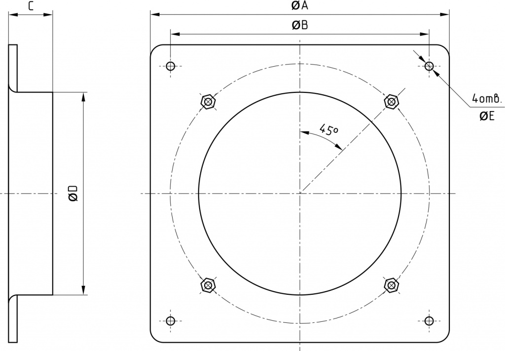 Тип A B C N-отв Е C1 F H D